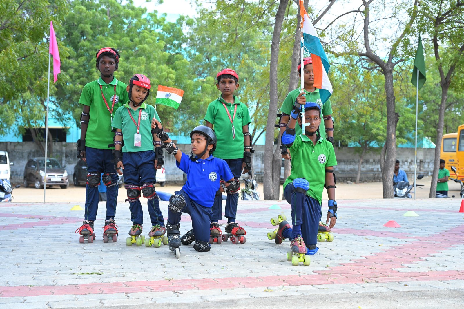 The schools are well connected by roads. The school has a fleet of self - owned modern means of conveyance consisting of buses and vans to meet all the requirements of the children.